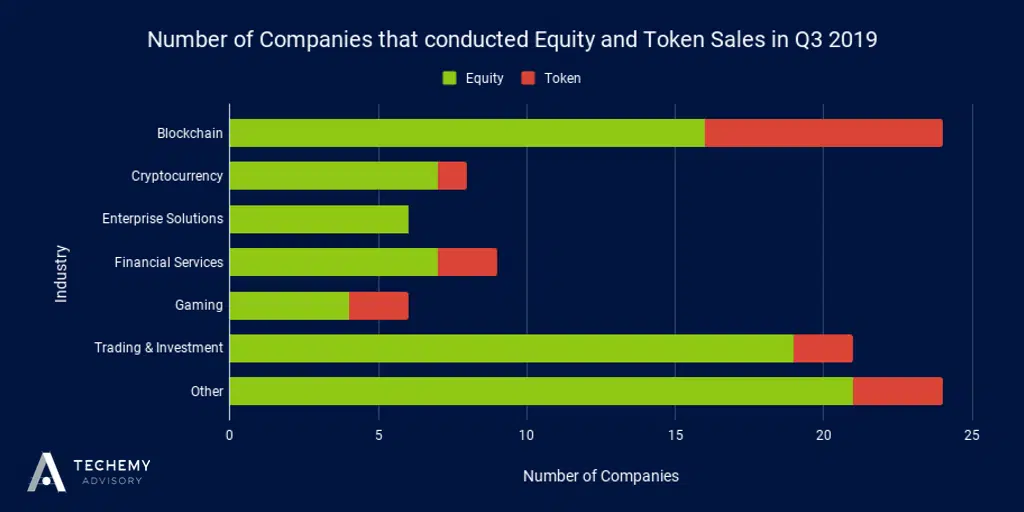 Как видно из рисунка 1 выше, в секторе «Блокчейн» и «Прочие» было двадцать четыре компании, привлекающие капитал. В категории «Другие» было наибольшее количество акций, и в нее входили компании в четырнадцати отраслях, в том числе в цепочках поставок, данных, недвижимости, билетов и т. В секторе торговли и инвестиций было больше всего компаний, привлекающих акционерный капитал — девятнадцать. В секторе Blockchain было больше компаний, осуществляющих продажу токенов. Восемь компаний из сектора Blockchain осуществляли продажи токенов, что больше, чем компании, которые подняли акции в криптовалюте, корпоративных решениях, финансовых услугах и игровых секторах.