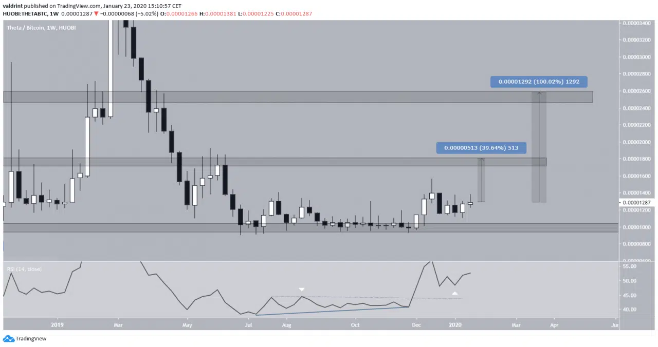 В заключение, цена THETA движется к максимуму своего диапазона. Его долгосрочное движение RSI поддерживает продолжающееся повышение цены, которое может привести его к следующей области сопротивления в 2600 сатоши. Это будет означать 100% увеличение по сравнению с текущей ценой.